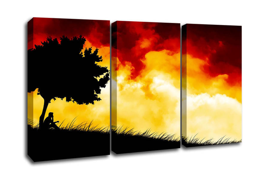 Fire Sky Red 3 Panel Canvas Print handmade in the UK. Stretched over a 2 inch thick wooden box frame, ready to hang on your wall.