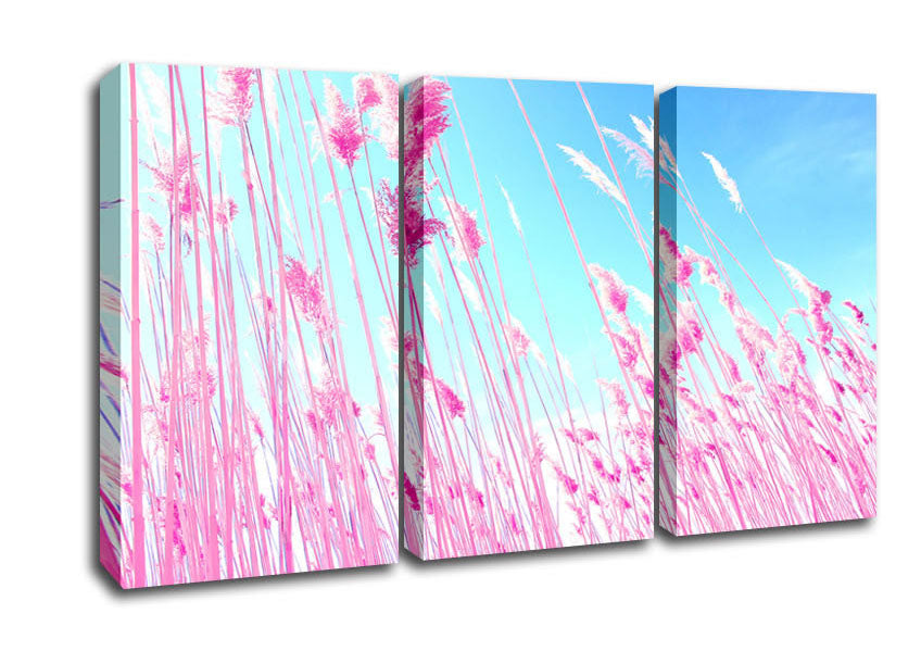Grass On Beach 3 Panel Canvas Print handmade in the UK. Stretched over a 2 inch thick wooden box frame, ready to hang on your wall.