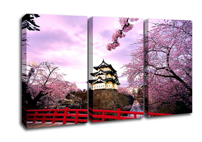 Hirosaki Castle Japan 3 Panel Canvas Print handmade in the UK. Stretched over a 2 inch thick wooden box frame, ready to hang on your wall.