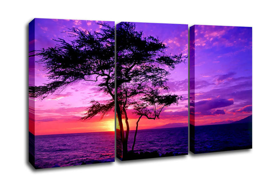 Red Ocean Tree 3 Panel Canvas Print handmade in the UK. Stretched over a 2 inch thick wooden box frame, ready to hang on your wall.