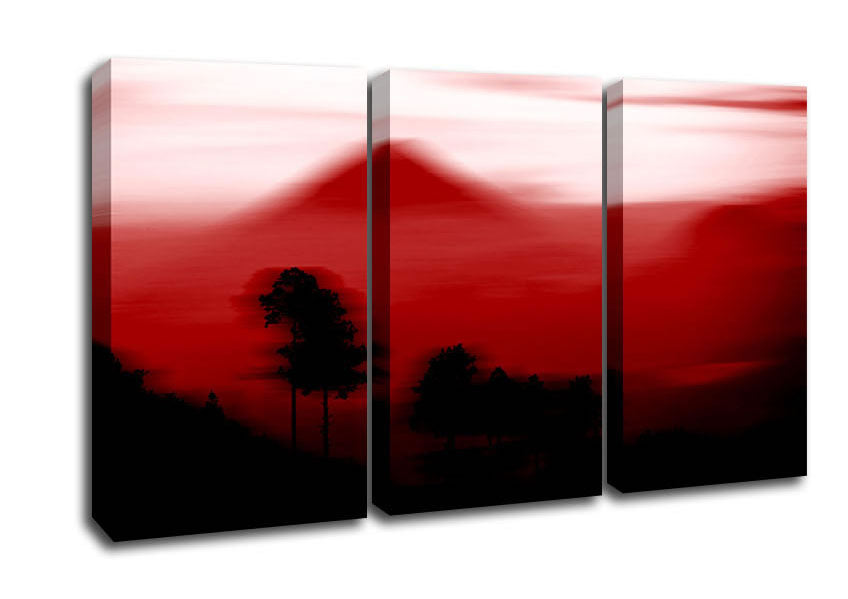 Red Pyramid Blur 3 Panel Canvas Print handmade in the UK. Stretched over a 2 inch thick wooden box frame, ready to hang on your wall.