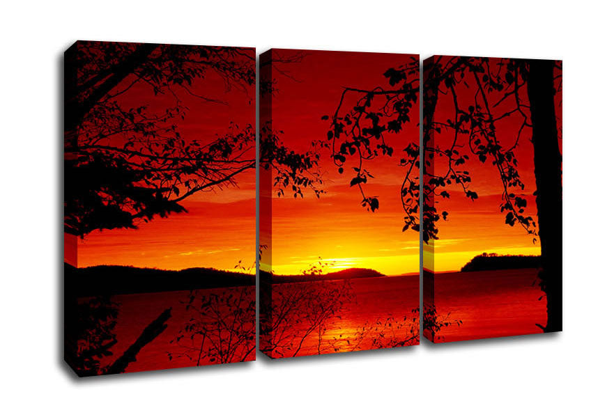 Red River Through The Trees 3 Panel Canvas Print handmade in the UK. Stretched over a 2 inch thick wooden box frame, ready to hang on your wall.