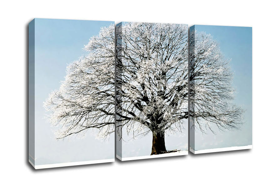 Snow Tree 3 Panel Canvas Print handmade in the UK. Stretched over a 2 inch thick wooden box frame, ready to hang on your wall.