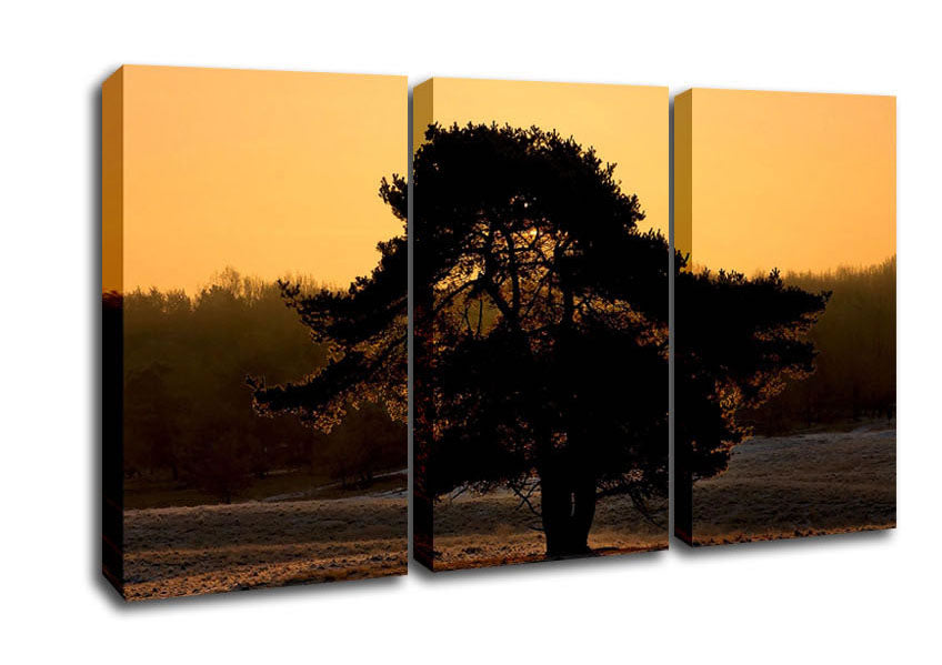 Stunning Old Tree At Dusk 3 Panel Canvas Print handmade in the UK. Stretched over a 2 inch thick wooden box frame, ready to hang on your wall.