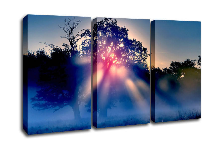 Sunset Blaze 3 Panel Canvas Print handmade in the UK. Stretched over a 2 inch thick wooden box frame, ready to hang on your wall.