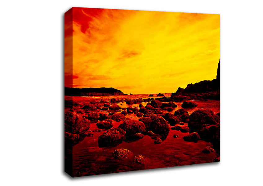 Red Ocean Boulders Square Canvas Print handmade in the UK. Stretched over a 2 inch thick wooden box frame, ready to hang on your wall.