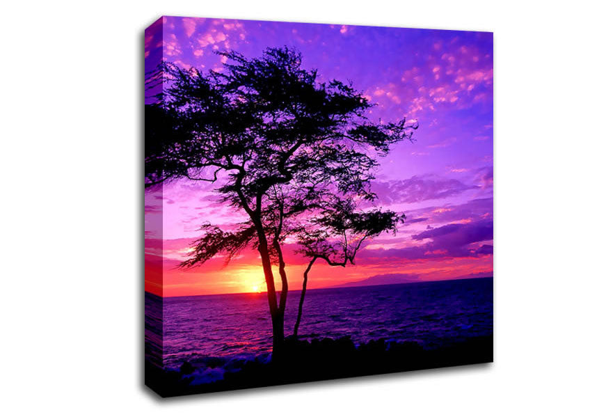 Red Ocean Tree Square Canvas Print handmade in the UK. Stretched over a 2 inch thick wooden box frame, ready to hang on your wall.