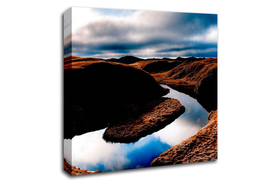 Small River Island Square Canvas Print handmade in the UK. Stretched over a 2 inch thick wooden box frame, ready to hang on your wall.
