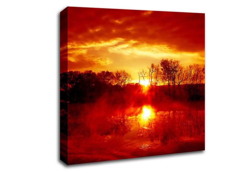 Stunning Lake Sunrise Reflections Square Canvas Print handmade in the UK. Stretched over a 2 inch thick wooden box frame, ready to hang on your wall.