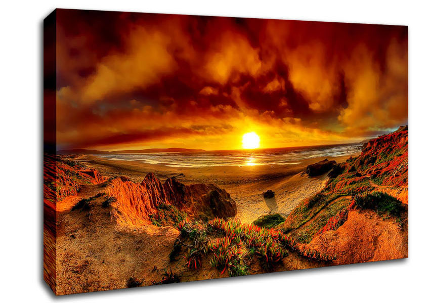 Beach Sunset Beauty Canvas Print handmade in the UK. Stretched over a 2 inch thick wooden box frame, ready to hang on your wall.