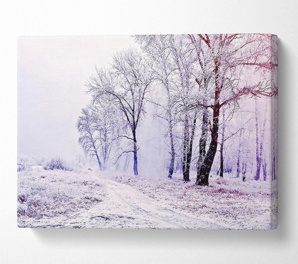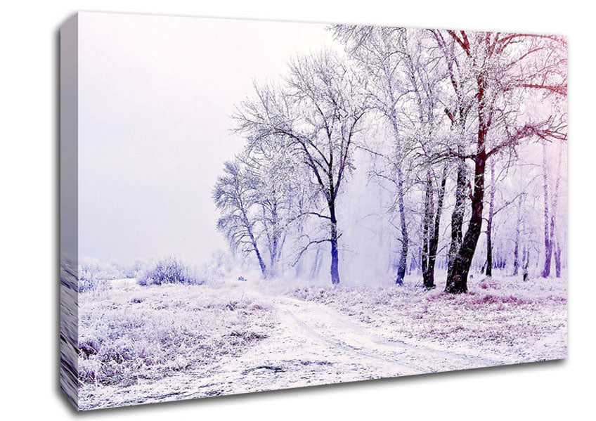 Beautiful Snowy Forest Canvas Print handmade in the UK. Stretched over a 2 inch thick wooden box frame, ready to hang on your wall.