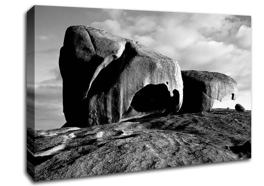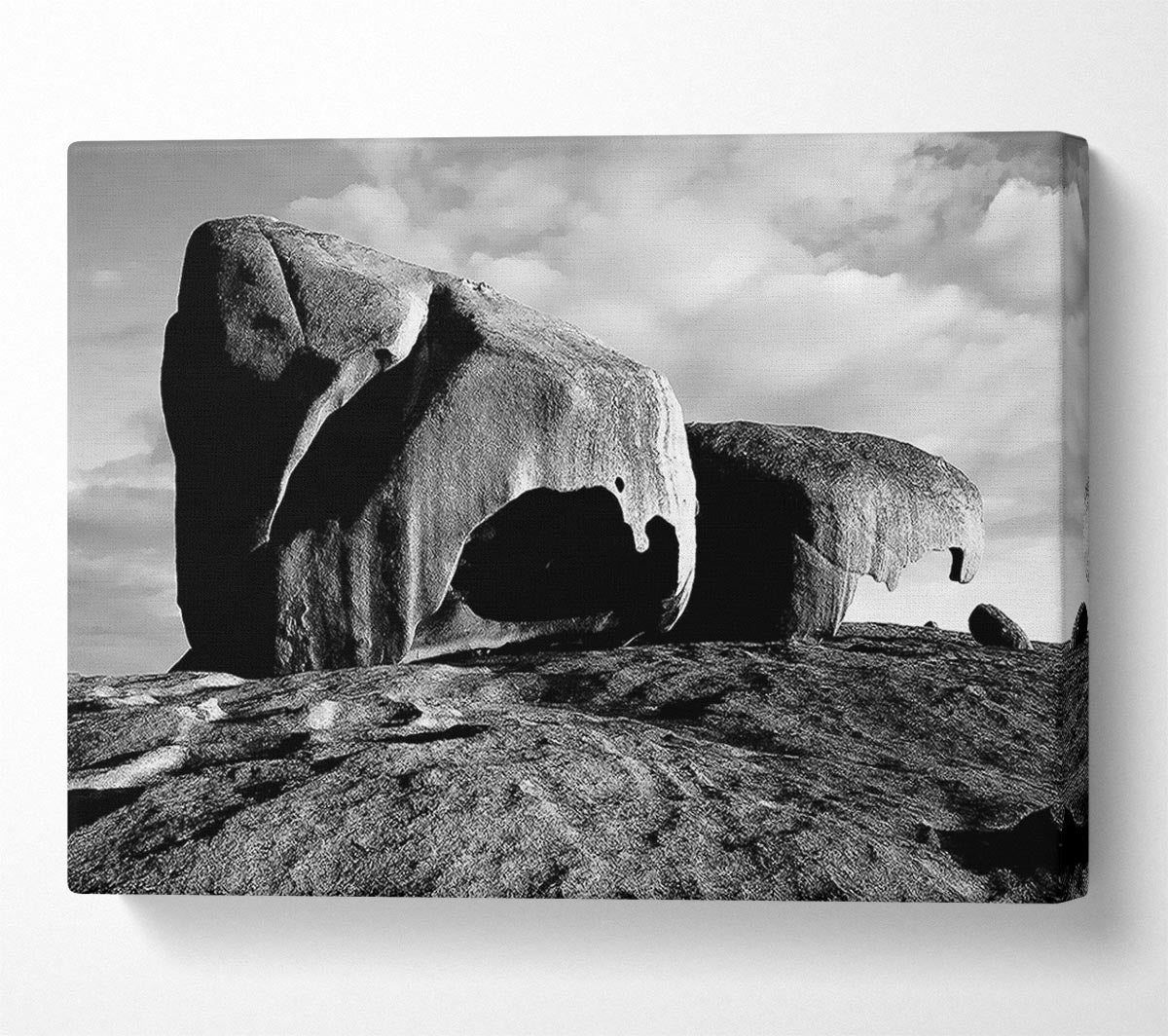 Boulders On Top Of The World B n W Canvas Print handmade in the UK. Stretched over a 2 inch thick wooden box frame, ready to hang on your wall.