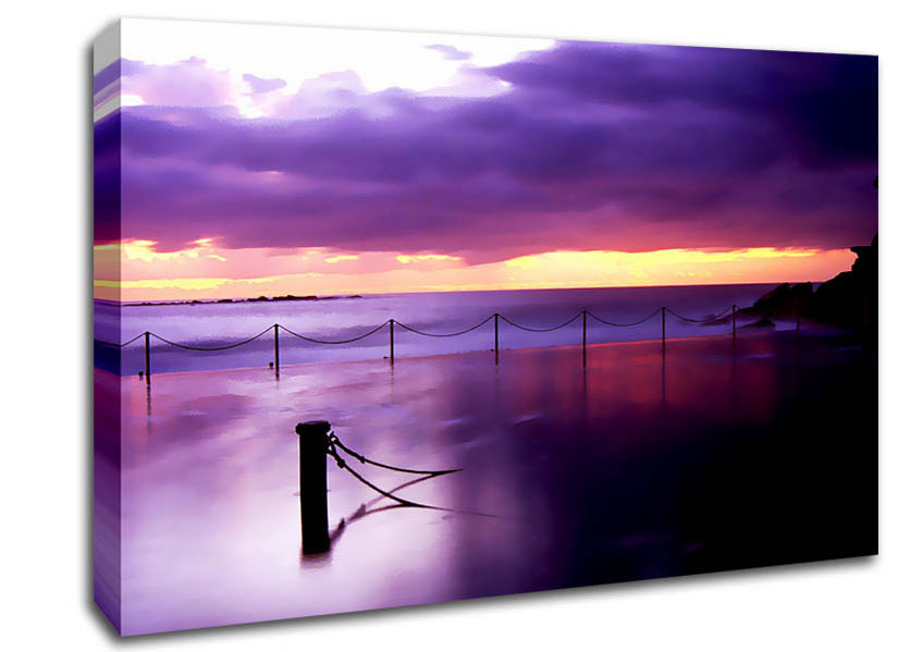 Calm Ocean Jetty Canvas Print handmade in the UK. Stretched over a 2 inch thick wooden box frame, ready to hang on your wall.