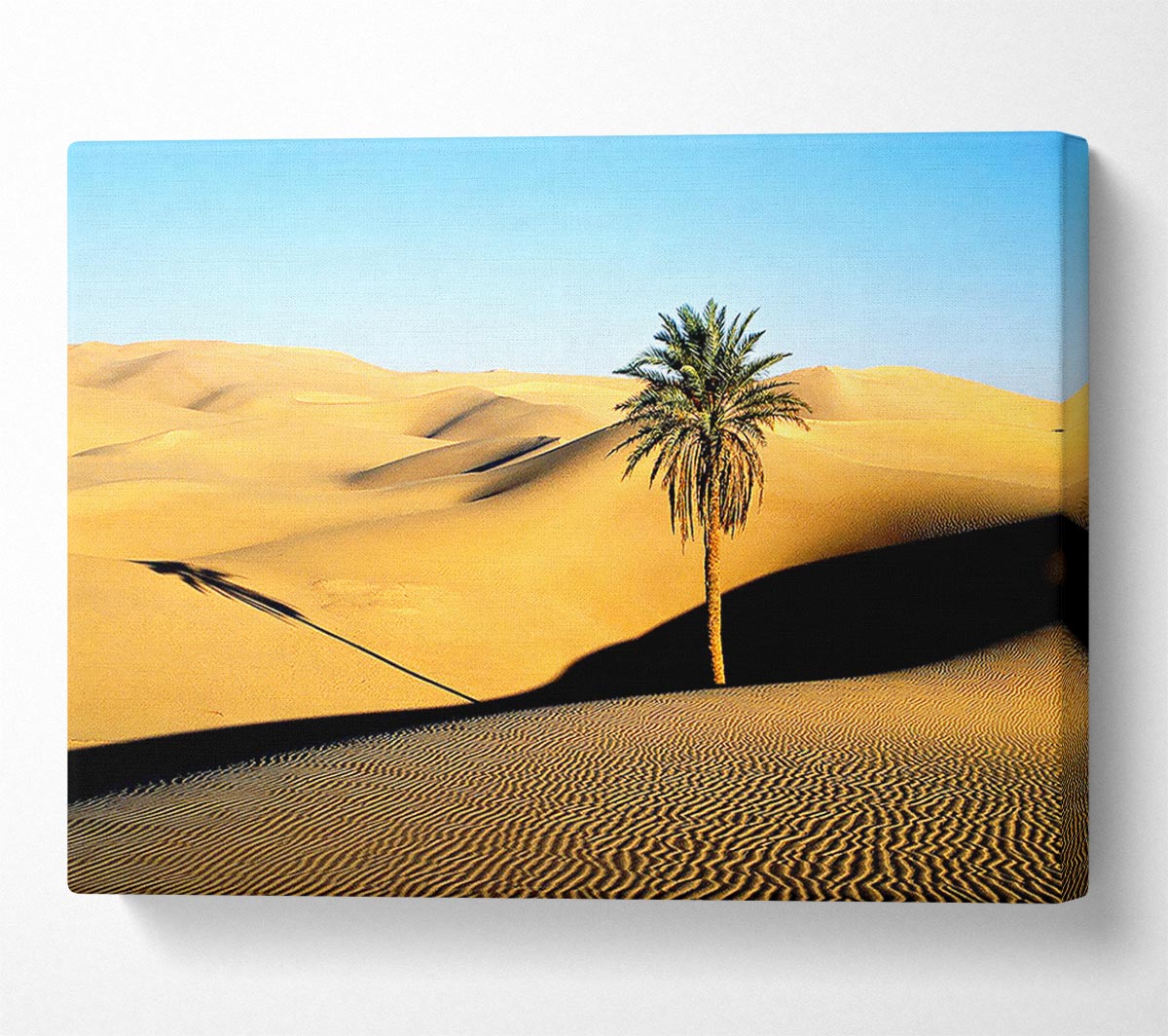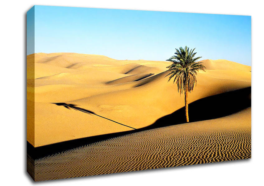 Desert Palmtree Canvas Print handmade in the UK. Stretched over a 2 inch thick wooden box frame, ready to hang on your wall.