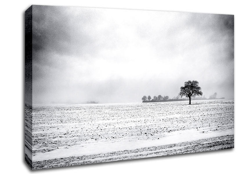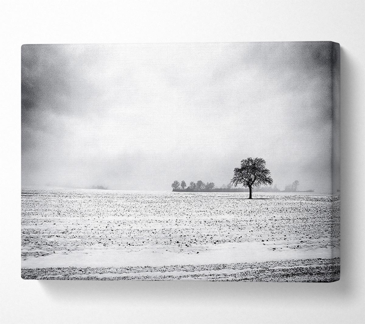 Empty Field Winter Canvas Print handmade in the UK. Stretched over a 2 inch thick wooden box frame, ready to hang on your wall.