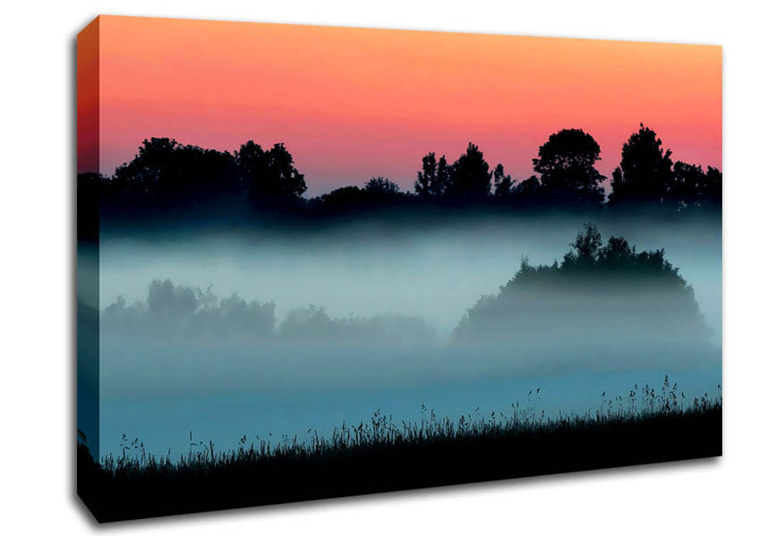 English Countryside Mist Canvas Print handmade in the UK. Stretched over a 2 inch thick wooden box frame, ready to hang on your wall.