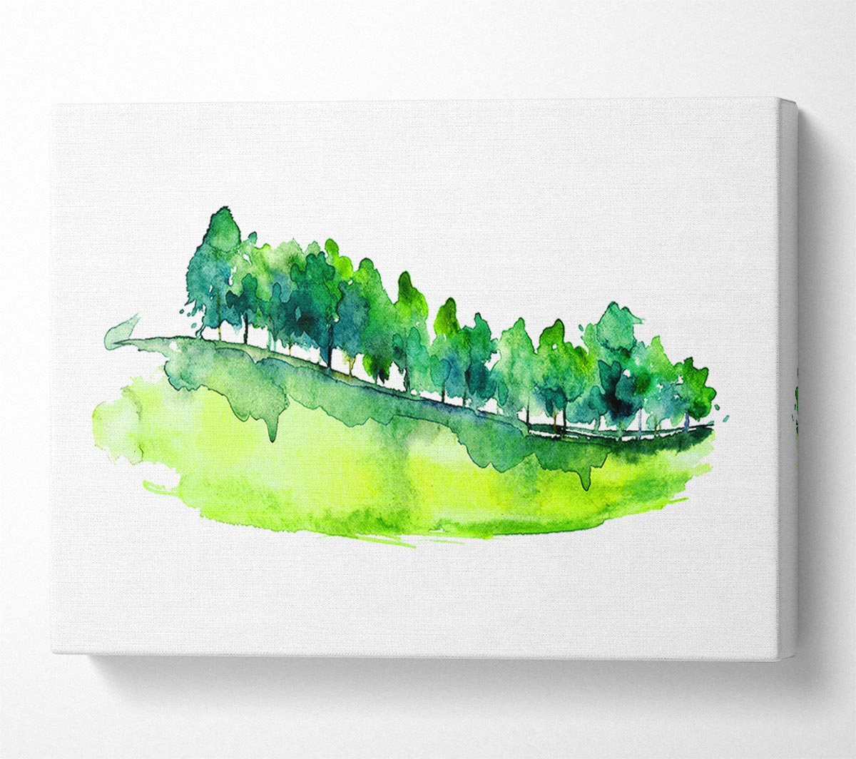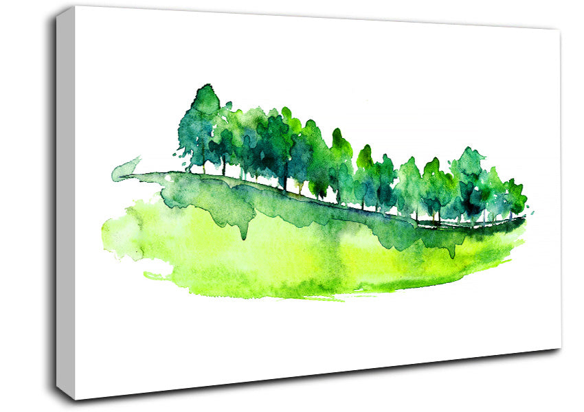 Field Of Green Trees Canvas Print handmade in the UK. Stretched over a 2 inch thick wooden box frame, ready to hang on your wall.