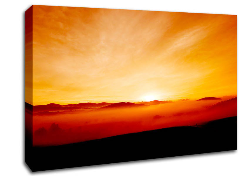 Golden Sunrise Mist Canvas Print handmade in the UK. Stretched over a 2 inch thick wooden box frame, ready to hang on your wall.