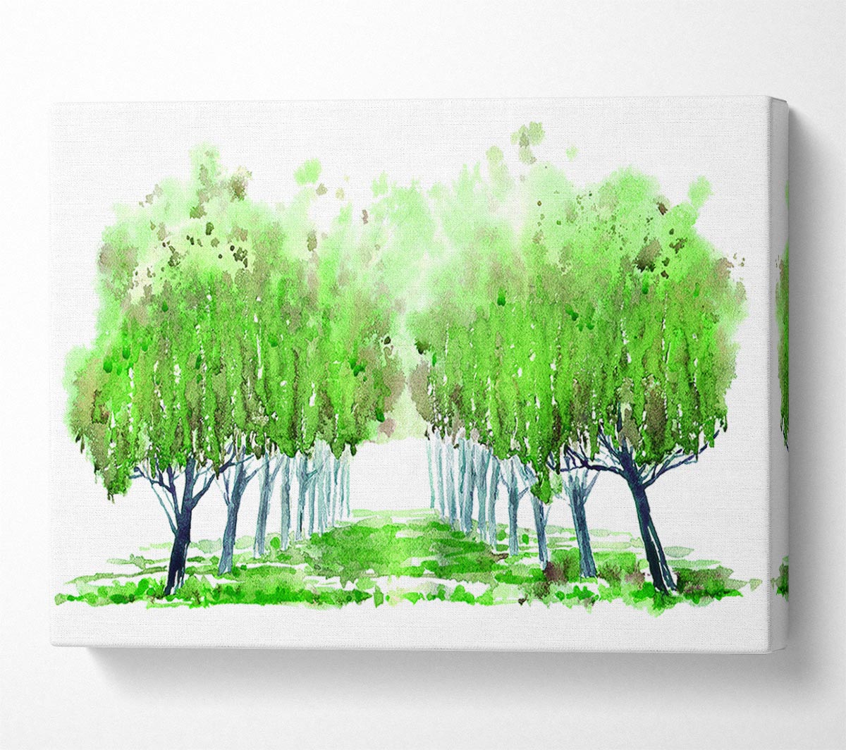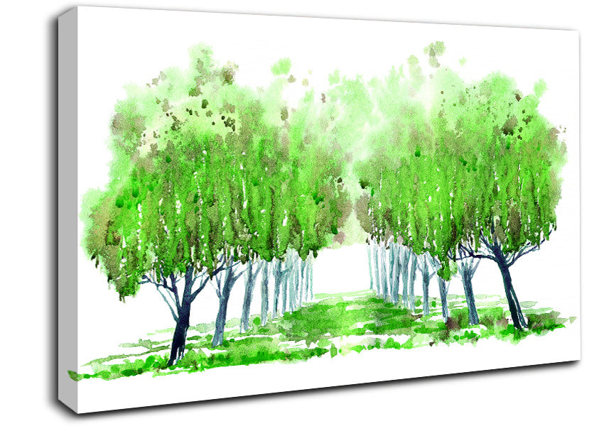 Green Tree Walk Canvas Print handmade in the UK. Stretched over a 2 inch thick wooden box frame, ready to hang on your wall.