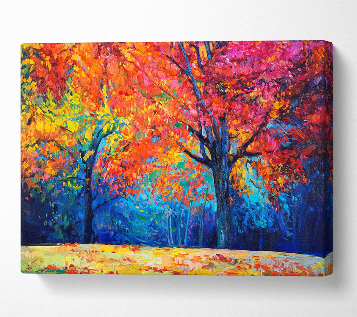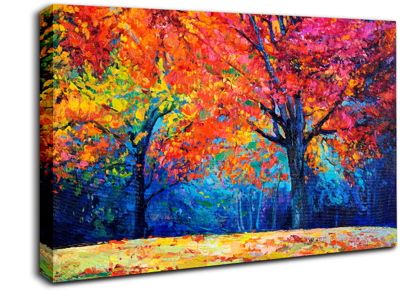 Magical Autumn Forest Canvas Print handmade in the UK. Stretched over a 2 inch thick wooden box frame, ready to hang on your wall.