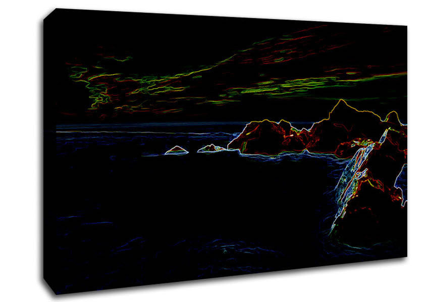 Neon Harbour Canvas Print handmade in the UK. Stretched over a 2 inch thick wooden box frame, ready to hang on your wall.