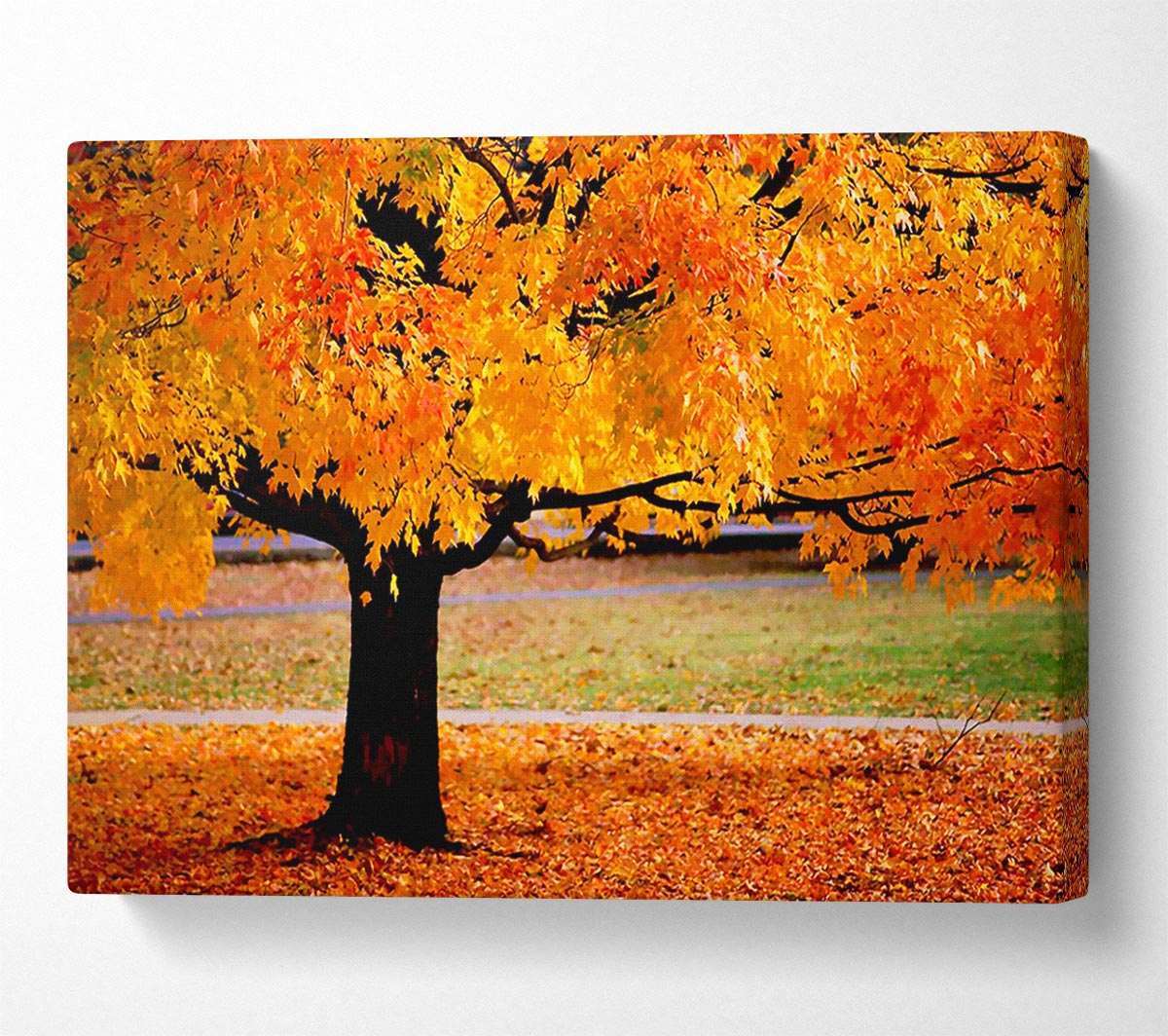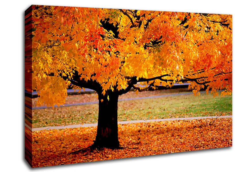 Orange Autumn Tree Canvas Print handmade in the UK. Stretched over a 2 inch thick wooden box frame, ready to hang on your wall.