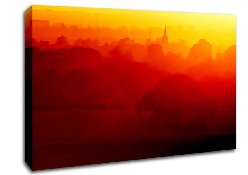 Orange Morning Countryside Canvas Print handmade in the UK. Stretched over a 2 inch thick wooden box frame, ready to hang on your wall.