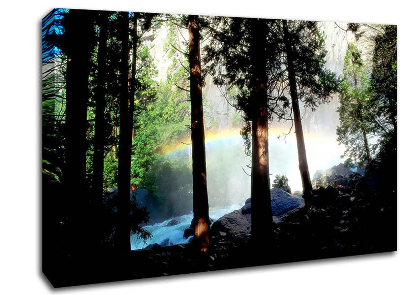 Rainbow In The Woodland Canvas Print handmade in the UK. Stretched over a 2 inch thick wooden box frame, ready to hang on your wall.