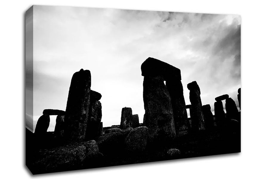 Stonehenge B n W Canvas Print handmade in the UK. Stretched over a 2 inch thick wooden box frame, ready to hang on your wall.