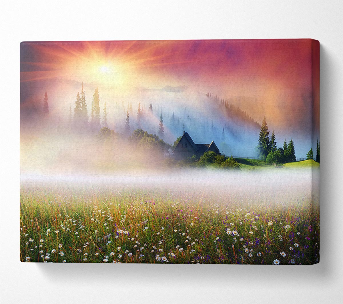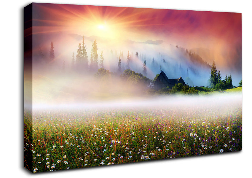 Sun Beams Through The Misty Flowers Canvas Print handmade in the UK. Stretched over a 2 inch thick wooden box frame, ready to hang on your wall.