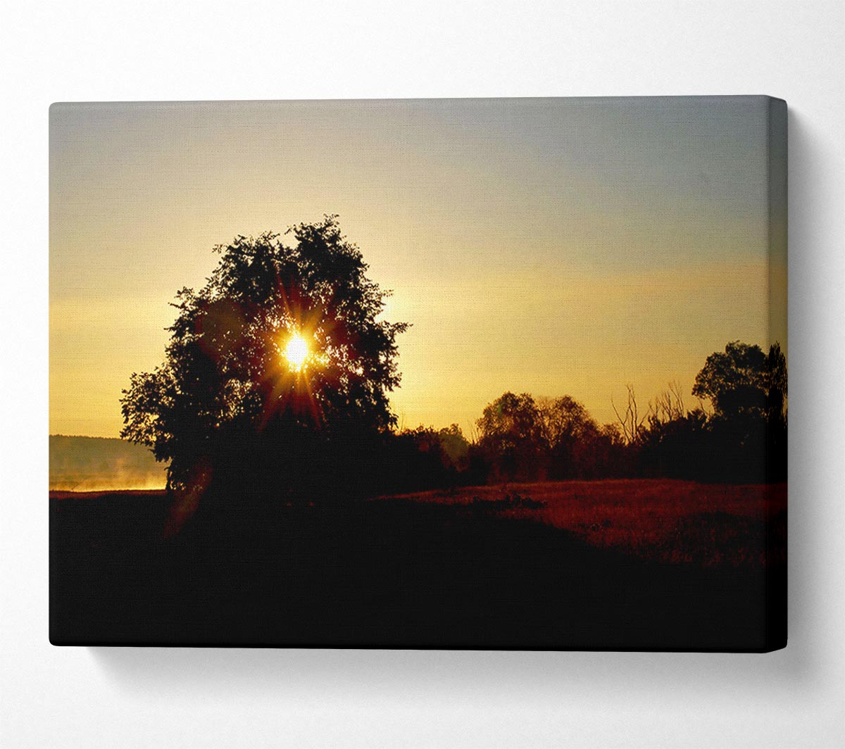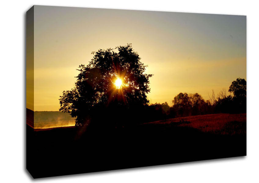 Sun Piercing Through The Tree Canvas Print handmade in the UK. Stretched over a 2 inch thick wooden box frame, ready to hang on your wall.