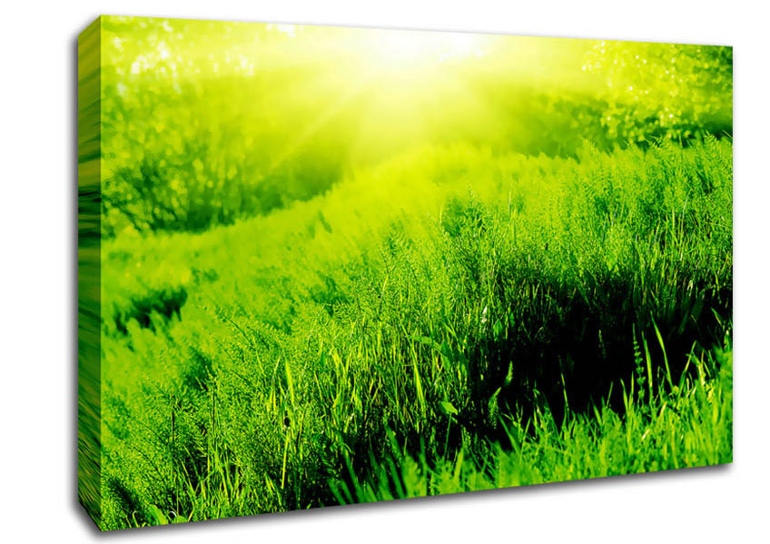 Sunbeam Meadow Canvas Print handmade in the UK. Stretched over a 2 inch thick wooden box frame, ready to hang on your wall.