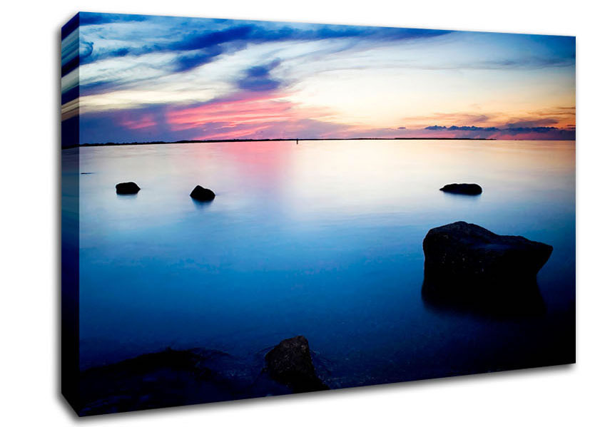 Tranquil Blue Calm Canvas Print handmade in the UK. Stretched over a 2 inch thick wooden box frame, ready to hang on your wall.