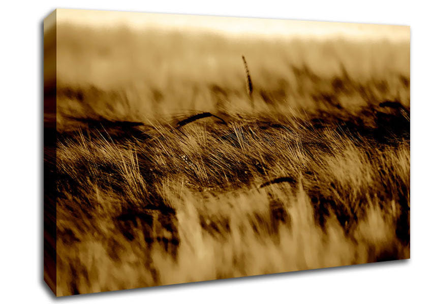 Wheatfield Sepia Canvas Print handmade in the UK. Stretched over a 2 inch thick wooden box frame, ready to hang on your wall.