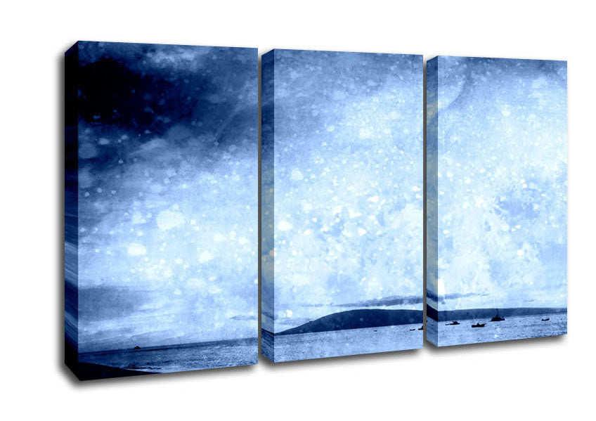 Beach Sky 3 Panel Canvas Print handmade in the UK. Stretched over a 2 inch thick wooden box frame, ready to hang on your wall.