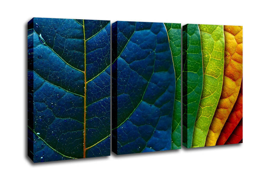 Colourful Leaves 3 Panel Canvas Print handmade in the UK. Stretched over a 2 inch thick wooden box frame, ready to hang on your wall.