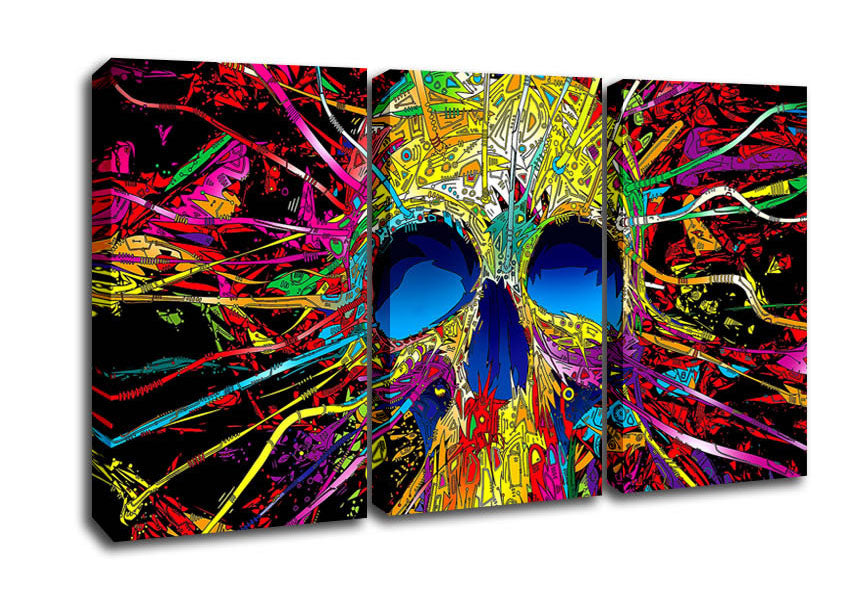 Colourful Skull 3 Panel Canvas Print handmade in the UK. Stretched over a 2 inch thick wooden box frame, ready to hang on your wall.