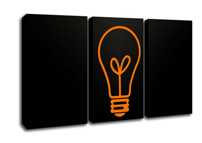 Light Bulb 3 3 Panel Canvas Print handmade in the UK. Stretched over a 2 inch thick wooden box frame, ready to hang on your wall.