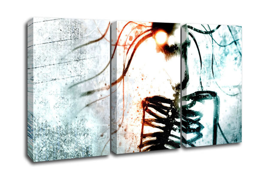Skull 4 3 Panel Canvas Print handmade in the UK. Stretched over a 2 inch thick wooden box frame, ready to hang on your wall.