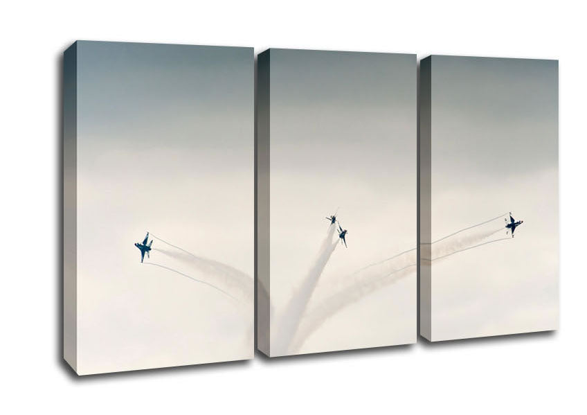 Thunderbirds 3 Panel Canvas Print handmade in the UK. Stretched over a 2 inch thick wooden box frame, ready to hang on your wall.
