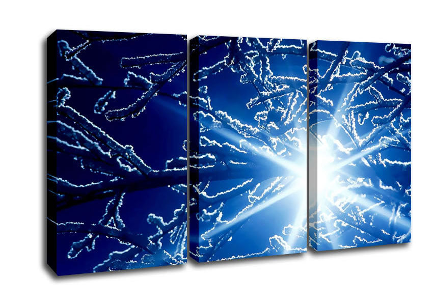 Winter Sun Rays 3 Panel Canvas Print handmade in the UK. Stretched over a 2 inch thick wooden box frame, ready to hang on your wall.