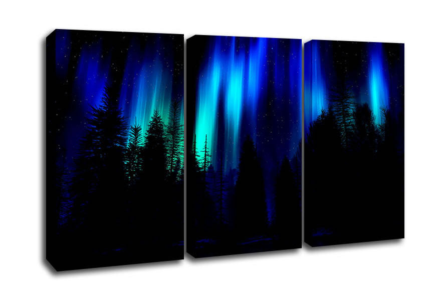 Blue Northern Lights Through The Forest