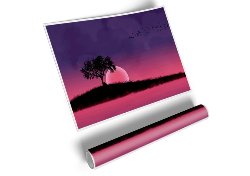 Pink Moonlit River Poster printed on high quality canvas paper, ready to display.