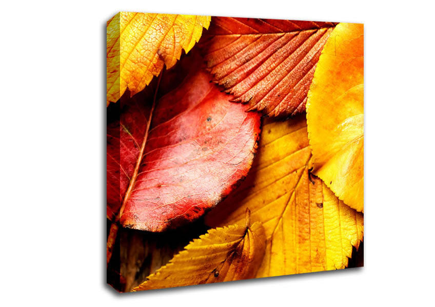 Beautiful Autumn Leaves Square Canvas Print handmade in the UK. Stretched over a 2 inch thick wooden box frame, ready to hang on your wall.