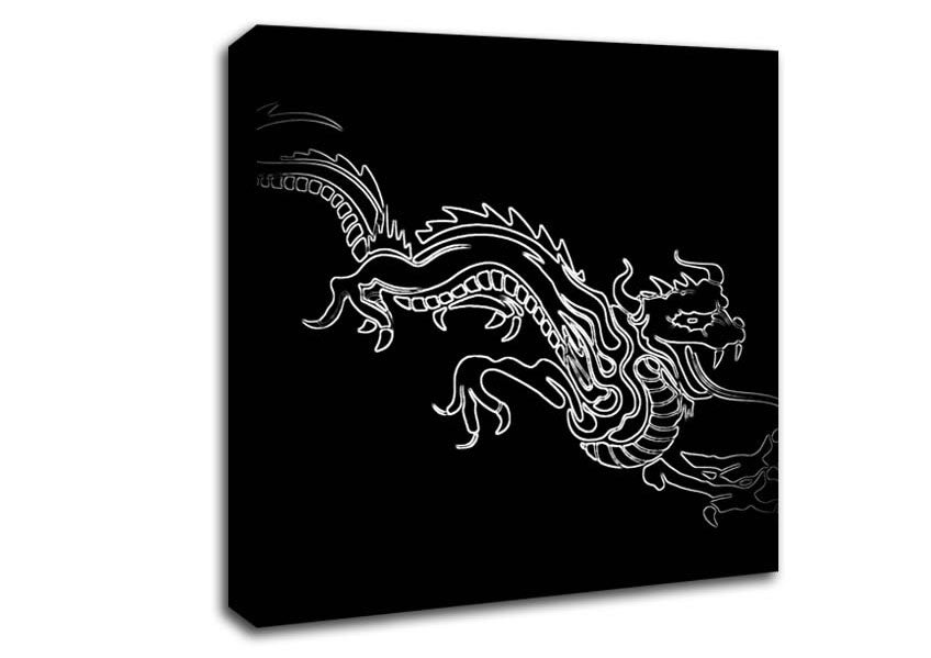 Black Fire Dragon Square Canvas Print handmade in the UK. Stretched over a 2 inch thick wooden box frame, ready to hang on your wall.