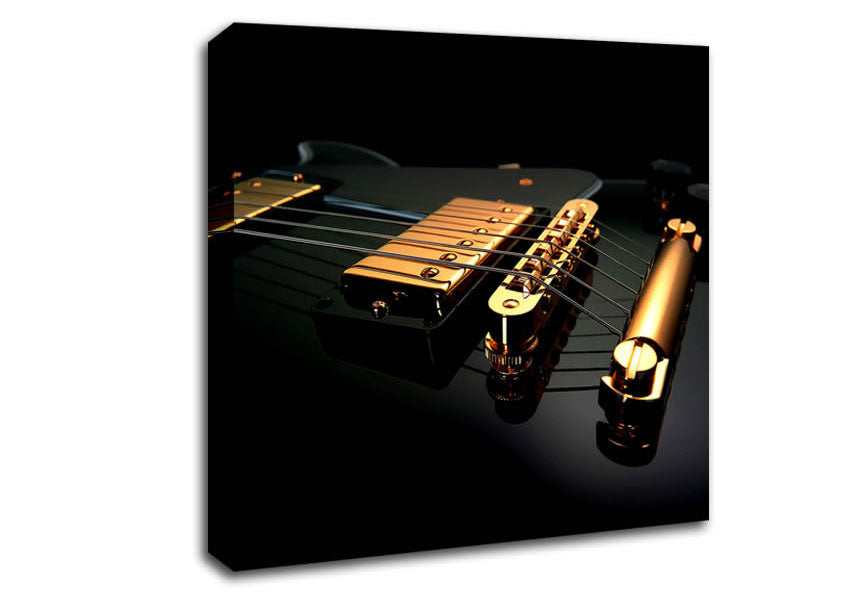 Black Guitar Square Canvas Print handmade in the UK. Stretched over a 2 inch thick wooden box frame, ready to hang on your wall.