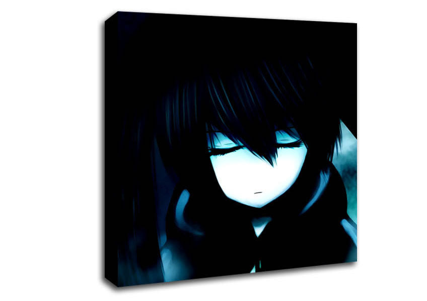 Black Rock Shooter Square Canvas Print handmade in the UK. Stretched over a 2 inch thick wooden box frame, ready to hang on your wall.