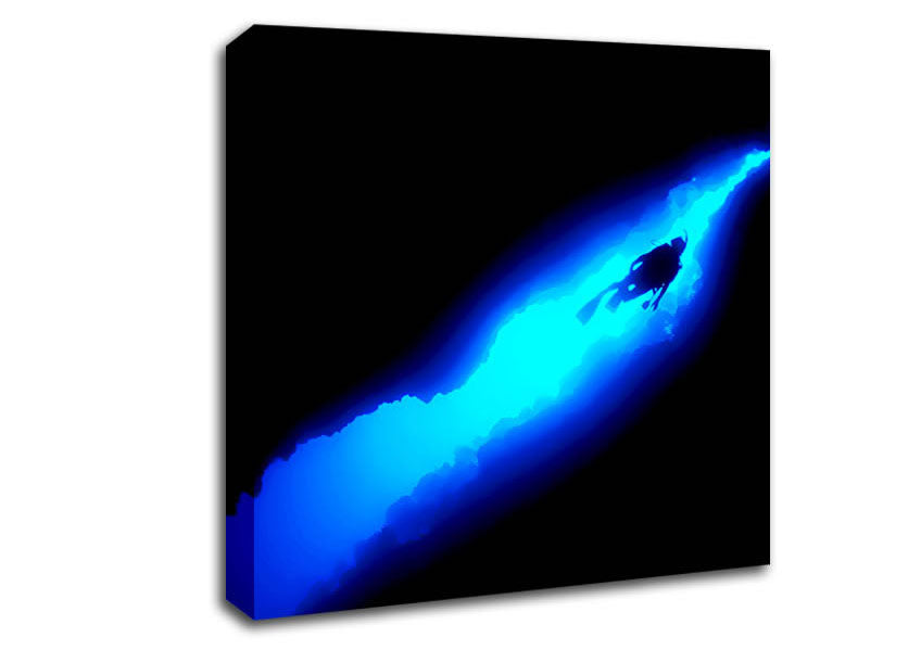 Blue Deep Sea Diver Square Canvas Print handmade in the UK. Stretched over a 2 inch thick wooden box frame, ready to hang on your wall.