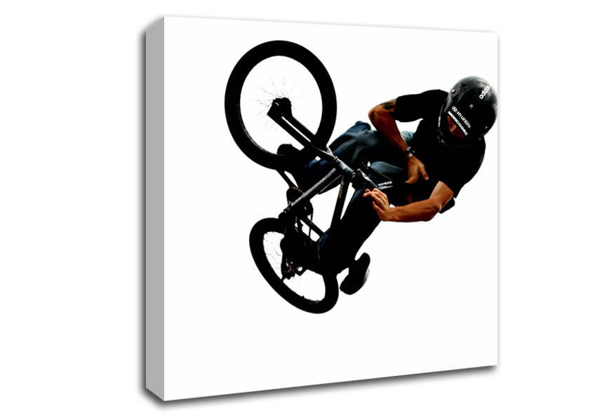 Bmx 180 Twist Square Canvas Print handmade in the UK. Stretched over a 2 inch thick wooden box frame, ready to hang on your wall.
