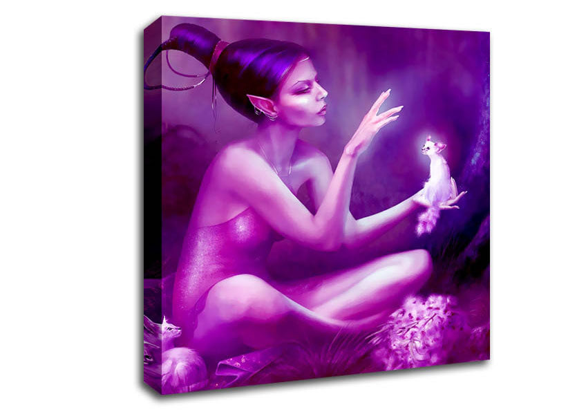 Pixie Cat Lover Square Canvas Print handmade in the UK. Stretched over a 2 inch thick wooden box frame, ready to hang on your wall.